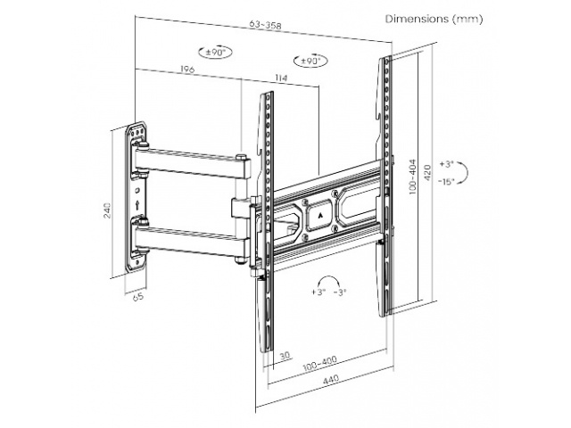 Compatible con medidas de Vesa: 100x100, 100x150, 150x100, 100x200, 200x100, 150x150, 200x200, 300x200, 400x200, 300x300, 400x300 y 400x400