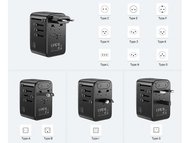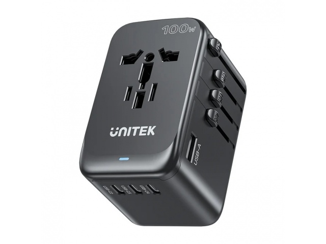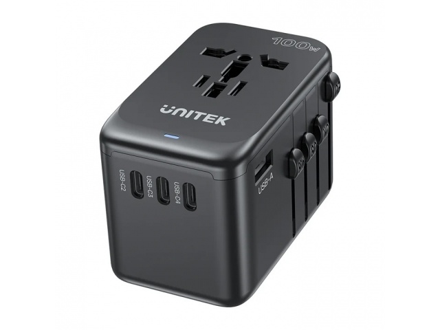 El adaptador de viaje universal de 100 W de UNITEK está equipado con 4 puertos de carga USB-C PD (máximo 100 W) y 1 puerto de carga USB-A (máximo 12 W) que pueden cargar hasta 5 dispositivos simultáneamente. Es ideal para viajes, viajes de negocios o estudios en el extranjero. Los enchufes de viaje integrados se pueden utilizar en más de 200 países de todo el mundo.