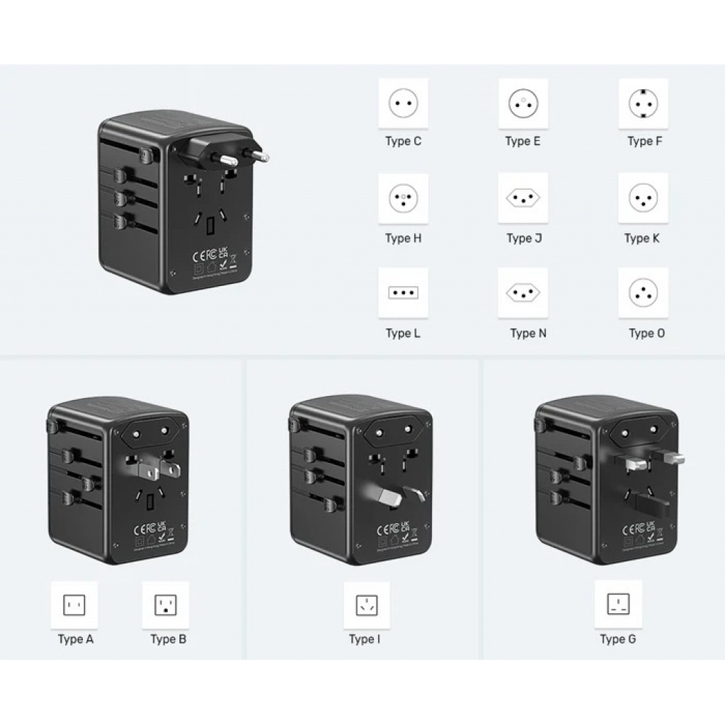 Adaptador de viaje universal de 35 W de UNITEK con 2 puertos de carga USB-C PD (máximo de 35 W) y 3 puertos de carga USB-A 3.0 (máximo de 12 W) que pueden cargar hasta 5 dispositivos simultáneamente. Es ideal para viajes, viajes de negocios o para estudiar en el extranjero. Los enchufes de viaje integrados se pueden utilizar en más de 200 países de todo el mundo.