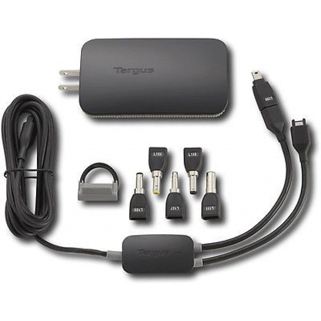 Incluye seis puntas de potencia que soportan la mayoría de las computadoras portátiles de marca + Mini USB. (ej: Dell, Toshiba, Sony, Lenovo, IBM, Panasonic, etc)