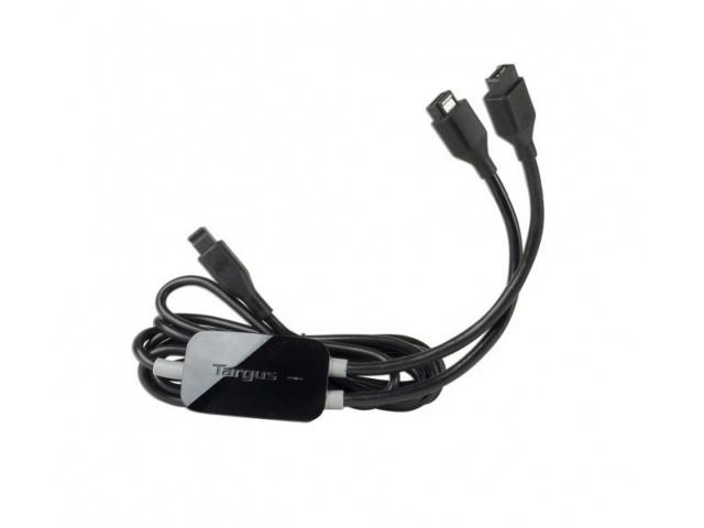 Con un diseño pequeño y compacto, el cargador Targus le permite cargar dos equipos a la vez con una potencia de hasta 90W.