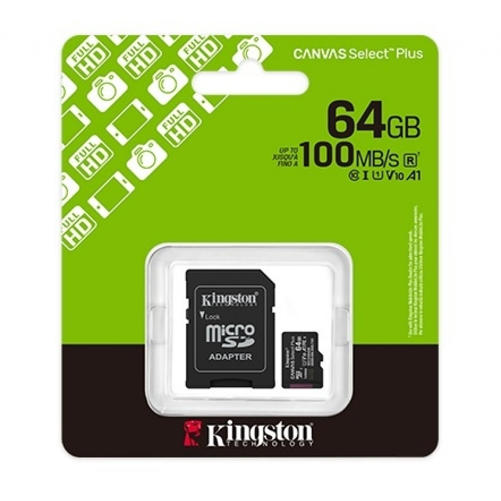 La tarjeta microSD Canvas Select Plus de Kingston está diseñada para ser confiable, lo que la hace ideal para filmar en HD y tomar fotos de alta resolución en su teléfono inteligente Android ™. Esta tarjeta ha sido probada para ser resistente, por lo que puede llevarla a cualquier parte con la confianza de que sus fotos, videos y otros datos estarán protegidos.