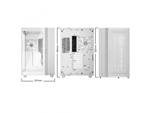 Diseño extra espacioso para hasta dos radiadores de 420mm al mismo tiempo y una placa base E-ATX.