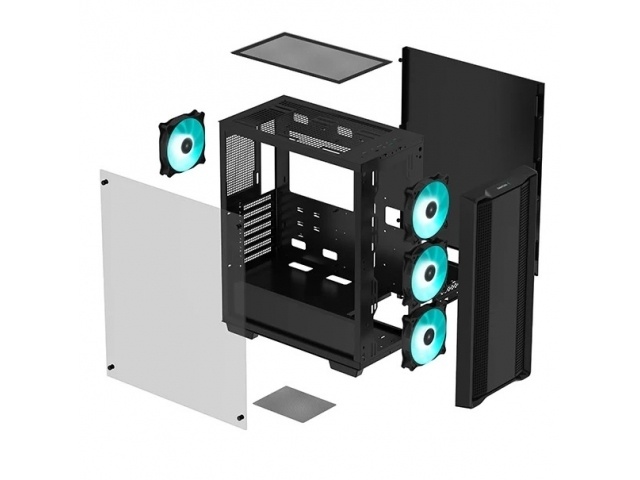 La caja DeepCool CC560 V2 Mid-Tower ofrece un valor excepcional con una amplia compatibilidad de componentes, una ventana de cristal templado de tamaño completo y un total de cuatro ventiladores LED preinstalados que hacen que cualquier construcción comience correctamente.