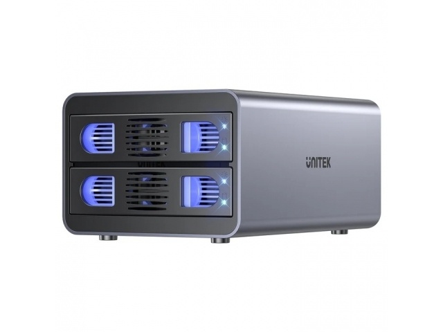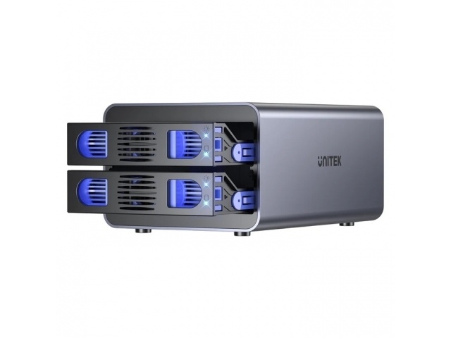 Soporta discos de 2.5" y 3.5" SATA tanto HDD como SSD. Hasta 40TB en total.