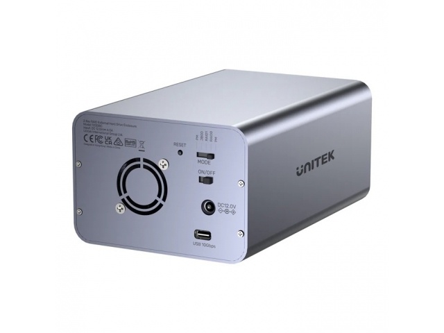 Gabinete para discos Sata con 2 bahías con RAID con excelente disipación de calor.