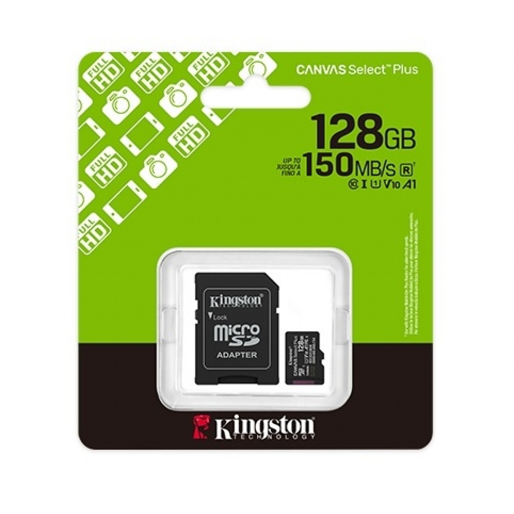 La tarjeta microSD Canvas Select Plus de Kingston está diseñada para ser confiable, lo que la hace ideal para filmar en HD y tomar fotos de alta resolución en su teléfono inteligente Android ™. Esta tarjeta ha sido probada para ser resistente, por lo que puede llevarla a cualquier parte con la confianza de que sus fotos, videos y otros datos estarán protegidos.