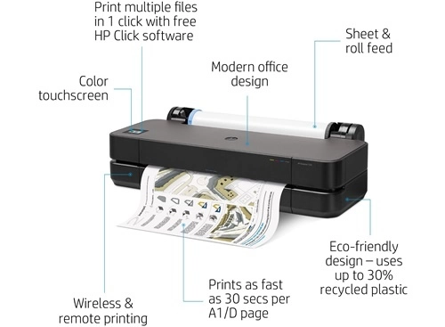 Impresora de gran formato de 24", compacta y fácil de usar. Ideal para oficinas, negocios y centros educativos que necesitan imprimir planos, carteles o pósters con calidad profesional. Ofrece colores precisos, bajo consumo de energía y un diseño silencioso y sostenible.