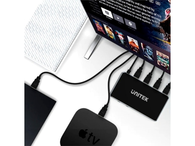 Conecte y cambie entre 5 entradas HDMI en 1 salida HDMI.