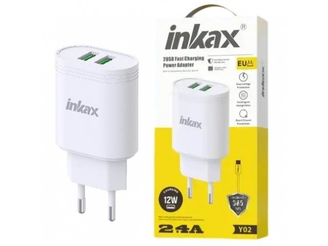 Cargador Inkax 2xUSB-A 12W 2.4A blanco