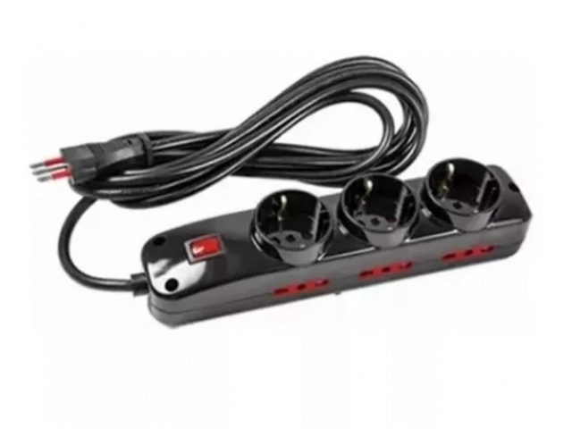 Alargue 3 metros 3xSchuko 6x3L a ficha 3L Conatel negro